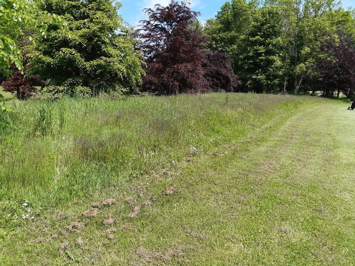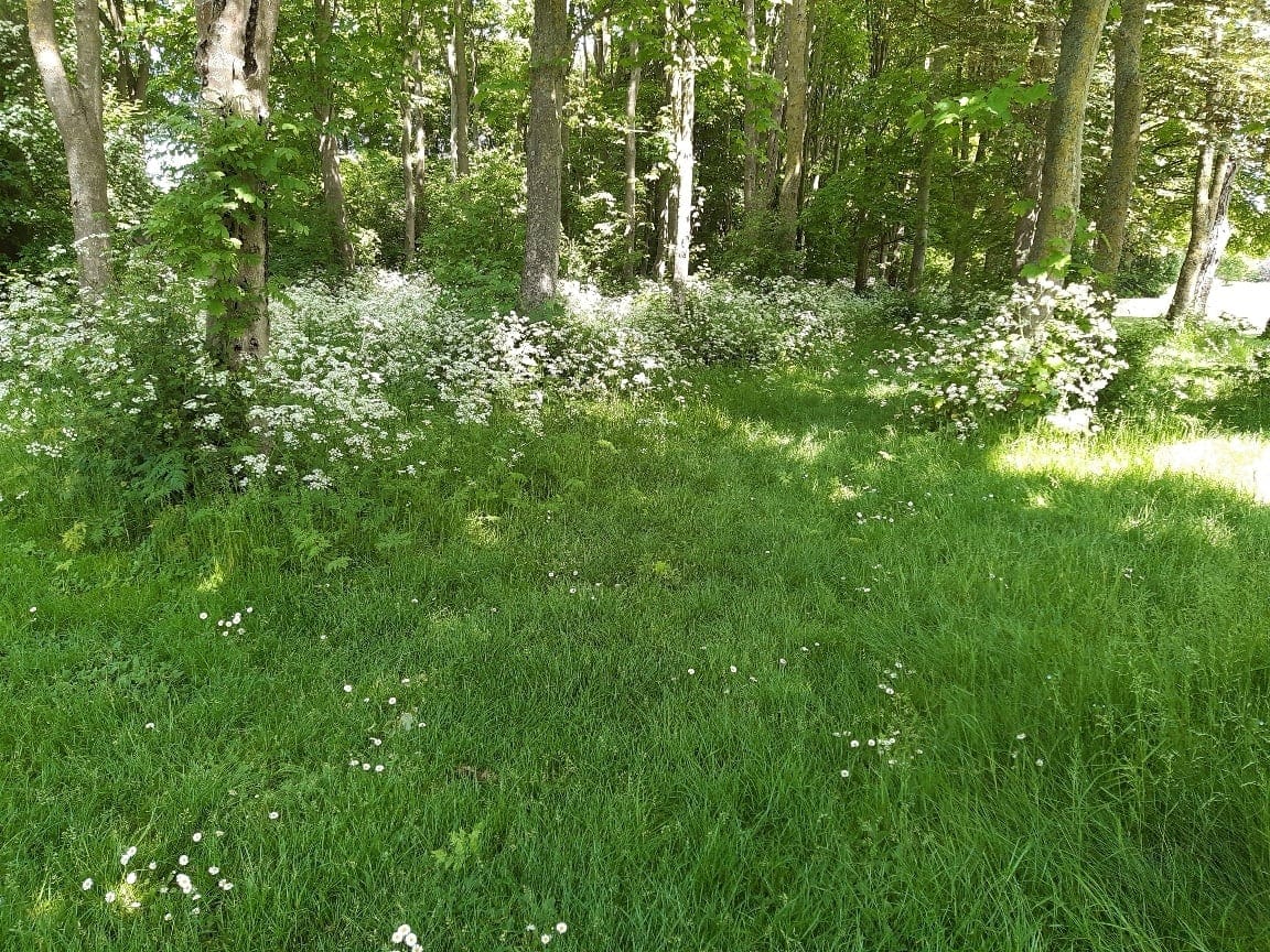 Het gras in de rough en vooral het (on)kruid in het bos groeit tegen de klippen op.